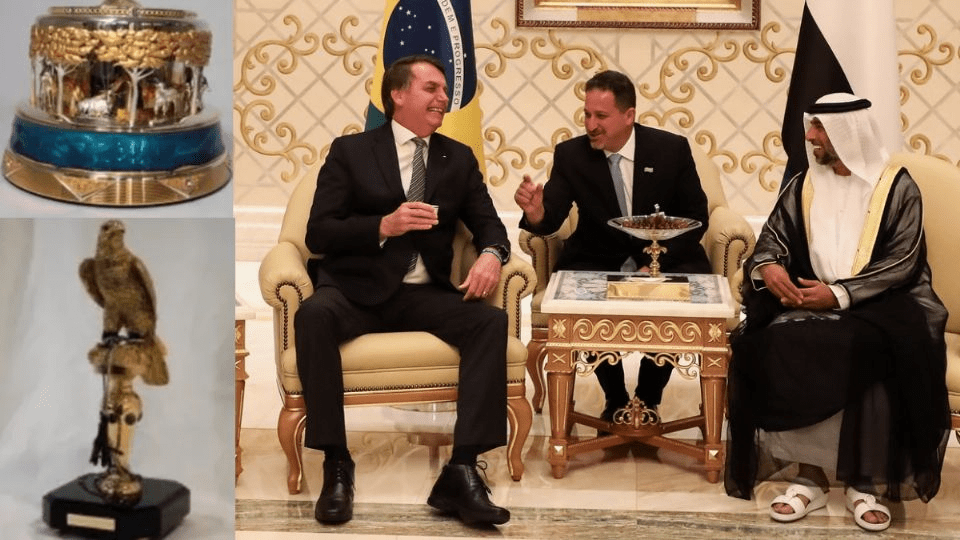 Os outros três itens na mira da PF foram entregues em 2019 pela embaixada dos Emirados Árabes no Brasil e por autoridades durante uma viagem de Bolsonaro a Abu Dhabi. Um deles é uma escultura de navio antigo, com 54 centímetros, feita de metal.