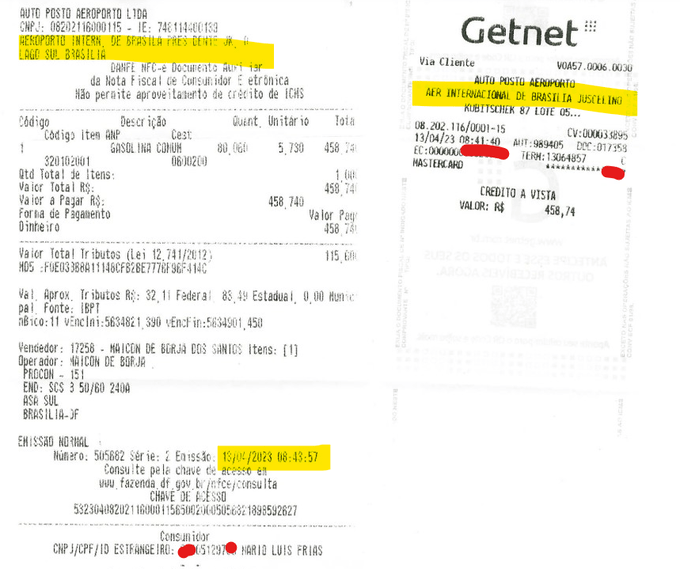 Conforme as informações levantadas pelo jornalista e escritor anônimo Doutor Pândego, o ex-ator da Globo pagou uma abasteceu seu carro em Brasília no dia 13 de abril às 8h41. No entanto, 37 minutos mais tarde, ele já estaria em Araras, no interior de São Paulo, para encher o tanque novamente. Em condições normais, a viagem demoraria cerca de 10 horas.