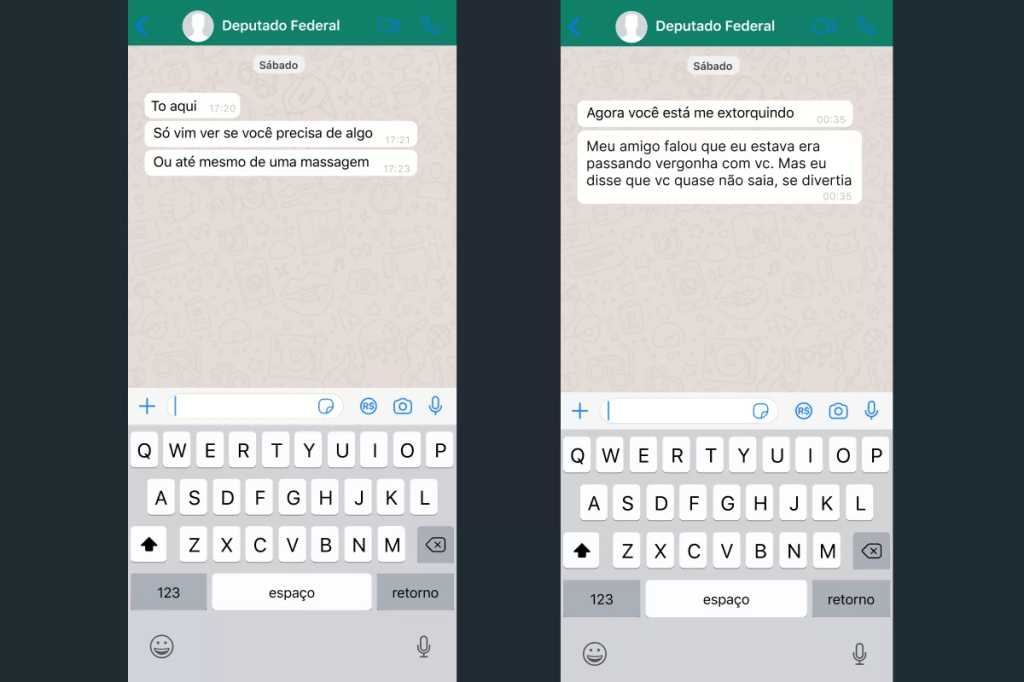 Ela concordou. Só no outro dia a garota enviou a chave Pix para o deputado, mas o pagamento virou uma espécie de “promessa de campanha”. Ele disse que só recebia dia 20, jogou na cara o fato de ter pago todo o consumo dela durante o período que estavam juntos e chegou a reclamar: “Nem me fez carinho. Perdi de ficar com outras garotas pra te honrar”.