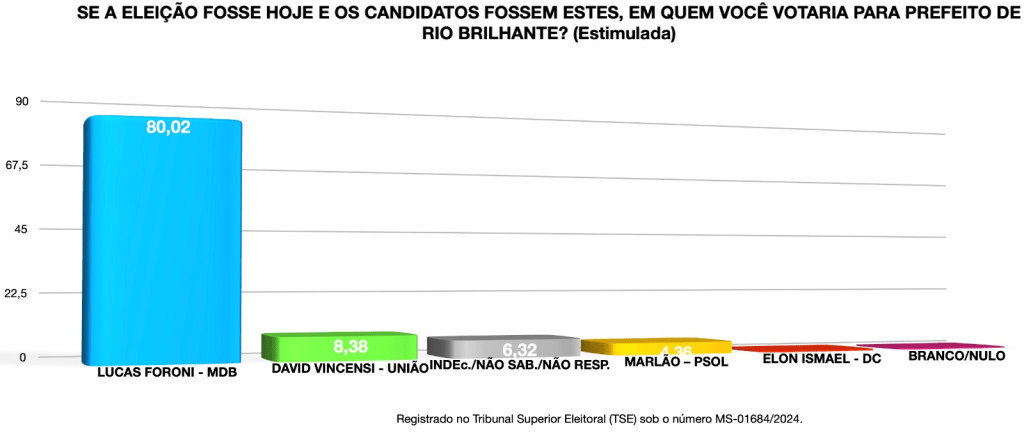 Com esses números, Lucas Foroni se mantém como o principal nome na corrida eleitoral, enquanto seus adversários, David Vincensi (União Brasil) e Marlos Augusto Joris, o “Marlão” (PSOL), aparecem com 8,38 e 4,36% das intenções de voto respectivamente. A confirmação da Justiça Eleitoral é um passo importante para garantir que a população de Rio Brilhante esteja bem informada sobre as tendências e preferências eleitorais.