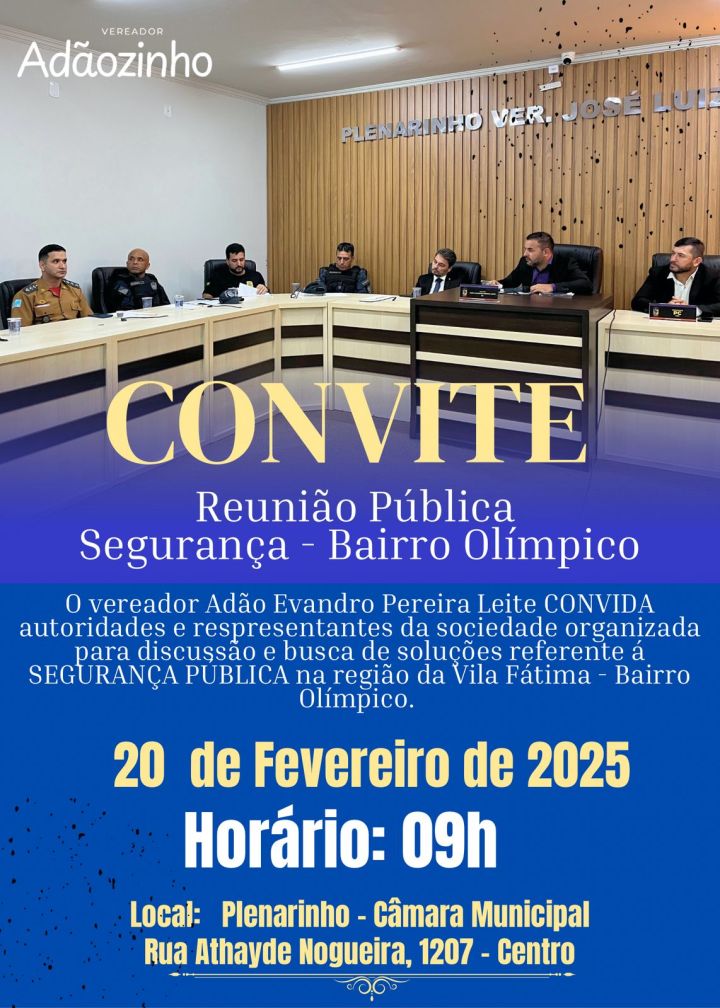 A pedido do vereador Adão Evandro, a Câmara de Vereadores de Rio Brilhante realizará amanhã uma reunião pública para debater a segurança pública do município, com especial foco na Vila Fátima, onde as reclamações sobre a criminalidade são constantes. O objetivo da audiência é discutir soluções e medidas para melhorar a segurança na região, garantindo a tranquilidade e o bem-estar dos moradores.