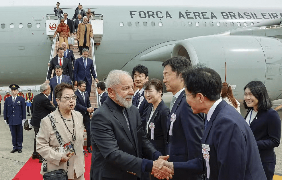O presidente Luiz Inácio Lula da Silva (PT) chegou ao Japão nesta segunda-feira (24) — noite deste domingo (23), no horário de Brasília —, acompanhado dos presidentes da Câmara dos Deputados, Hugo Motta (Republicanos-PB), e do Senado, Davi Alcolumbre (União-AP).